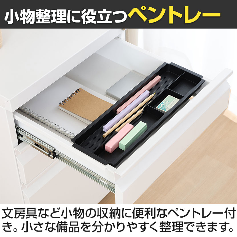 ・ペントレーが付いているので、細かな文具も散らばらずに収納できます。