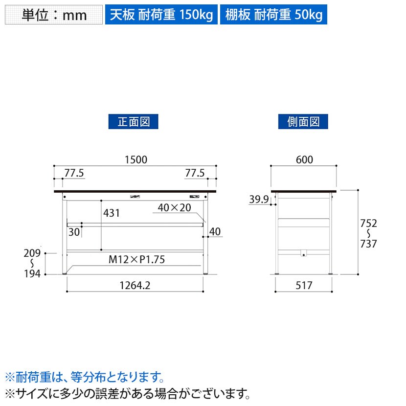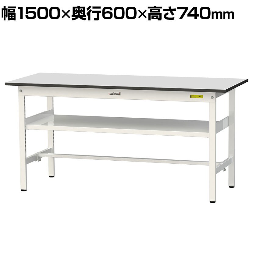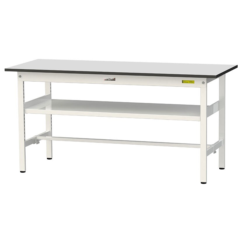 ・RoHS2指令対応の塩ビシート天板を採用。軽作業におすすめの汎用作業台、取り付け高さを変更できる中間棚板付き。