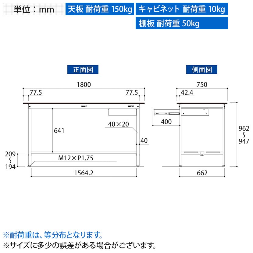 ・RoHS2指令対応の塩ビシート天板を採用。軽作業におすすめの汎用作業台、小物類の収納に便利な引き出しと足元に全面棚板付き。