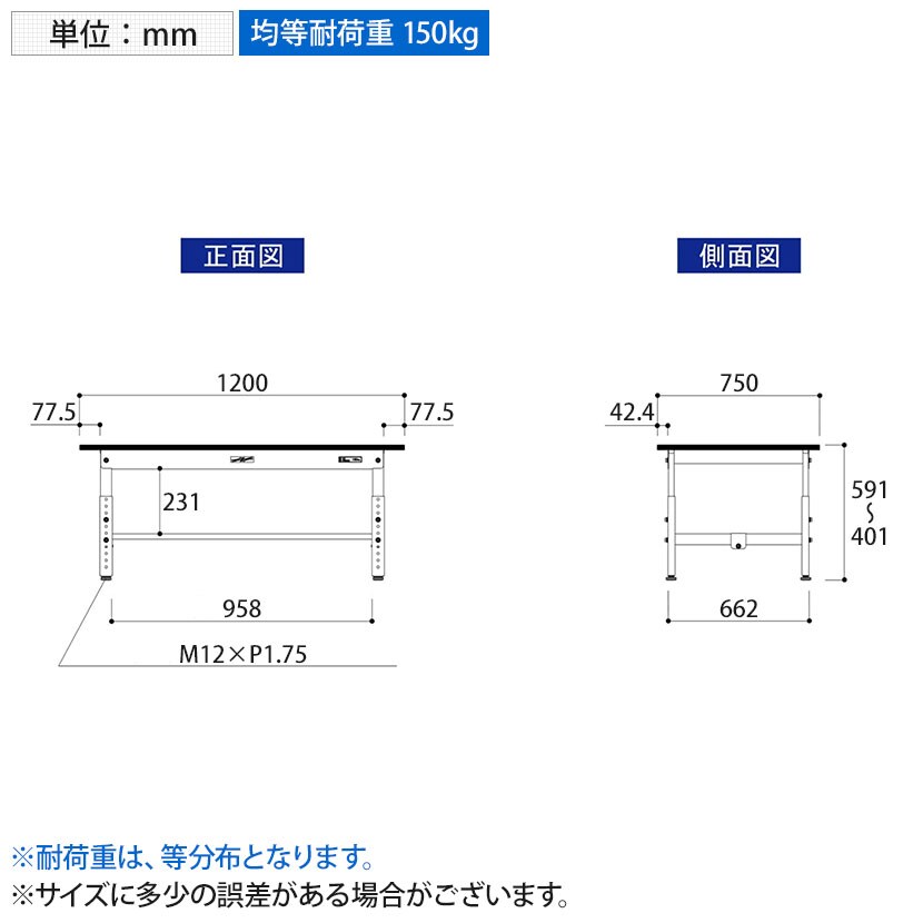 ・RoHS2指令対応の塩ビシート天板を採用。軽作業におすすめの高さ調整式の汎用作業台です。