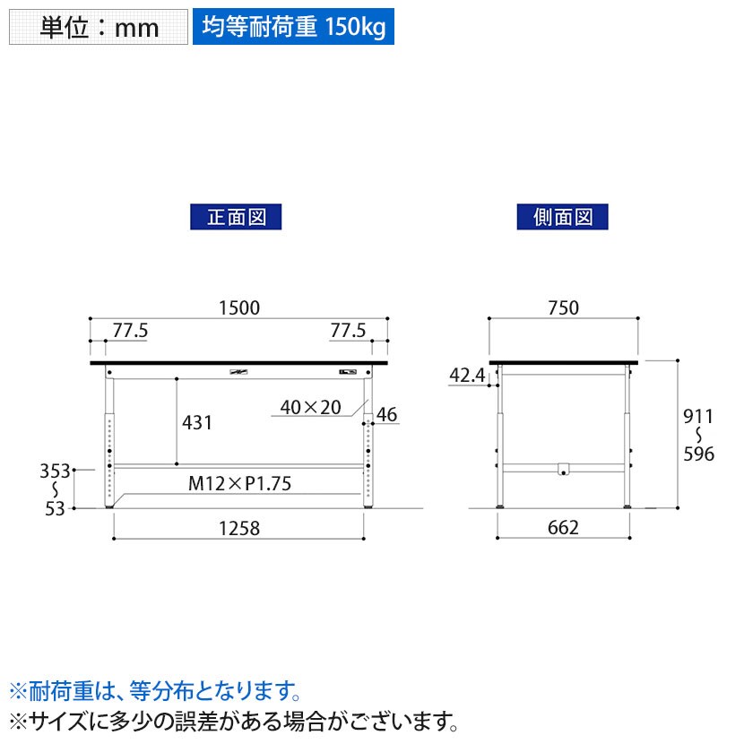 ・RoHS2指令対応の塩ビシート天板を採用。軽作業におすすめの高さ調整式の汎用作業台です。