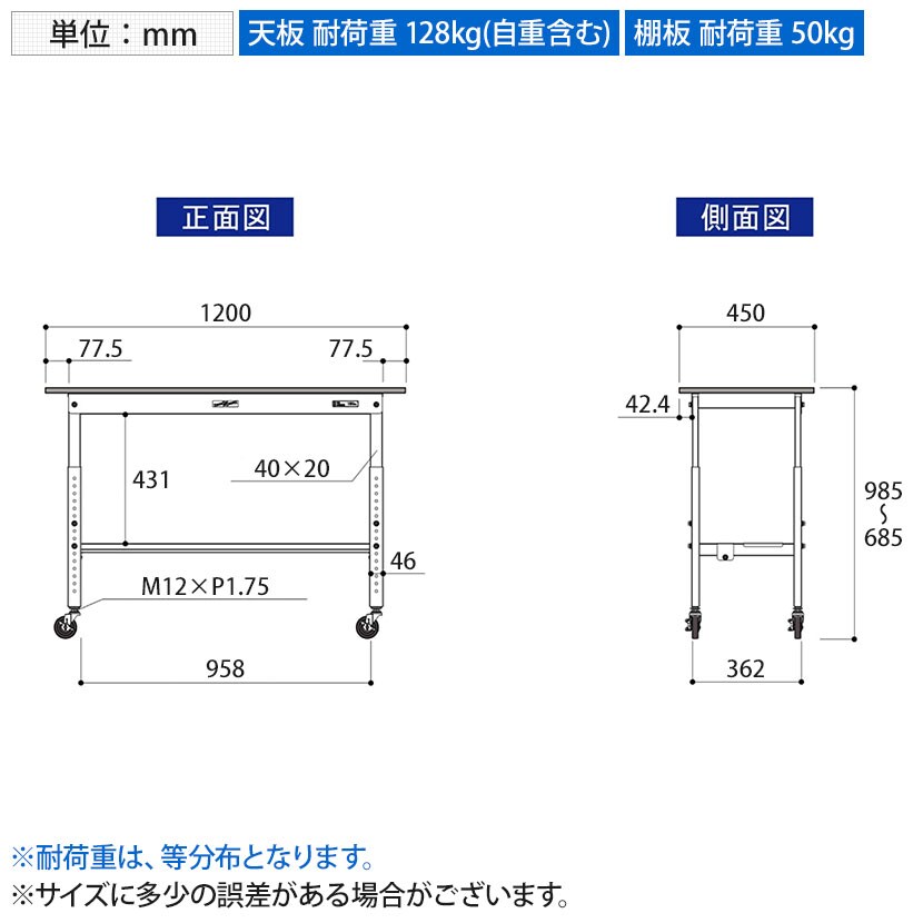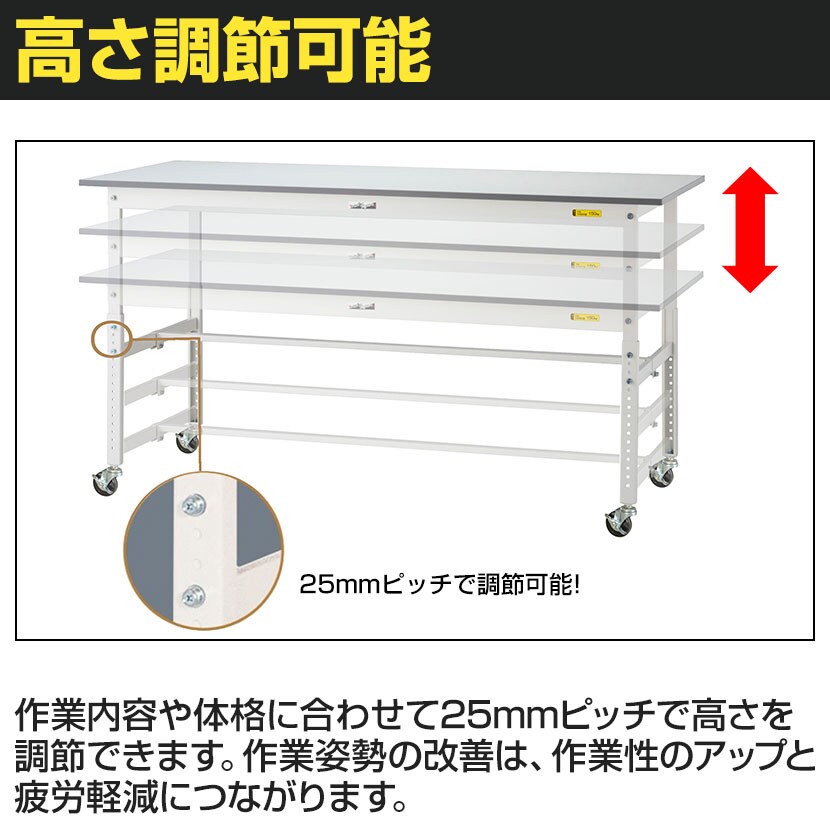 ・キャスター付きの為、レイアウト変更や作業場所の移動が簡単に行えます。