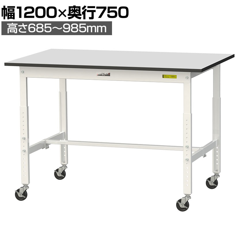 ・RoHS2指令対応の塩ビシート天板を採用。軽作業におすすめのキャスター付き&高さ調整式の汎用作業台です。