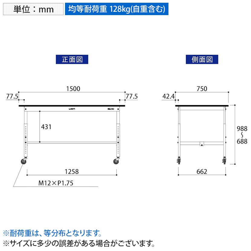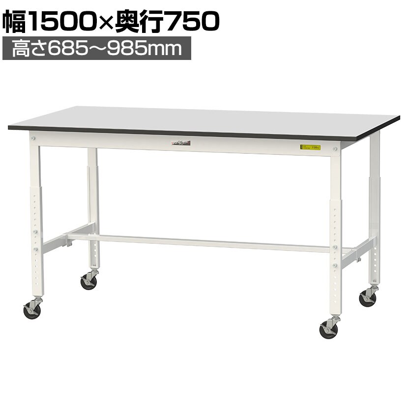 ・RoHS2指令対応の塩ビシート天板を採用。軽作業におすすめのキャスター付き&高さ調整式の汎用作業台です。