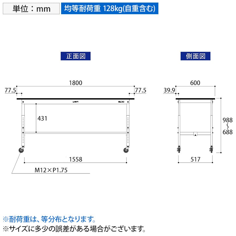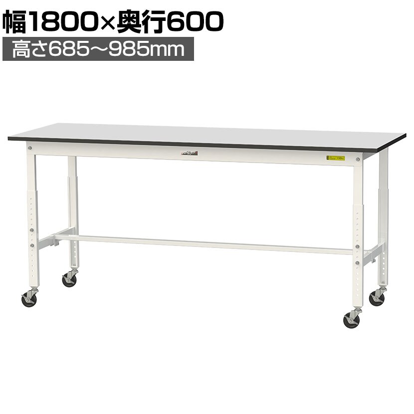 ・RoHS2指令対応の塩ビシート天板を採用。軽作業におすすめのキャスター付き&高さ調整式の汎用作業台です。