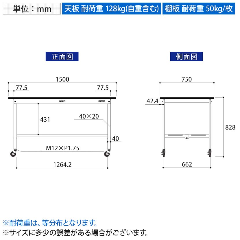 ・キャスター付きの為、レイアウト変更や作業場所の移動が簡単に行えます。