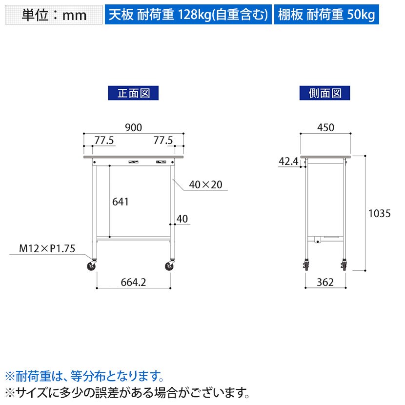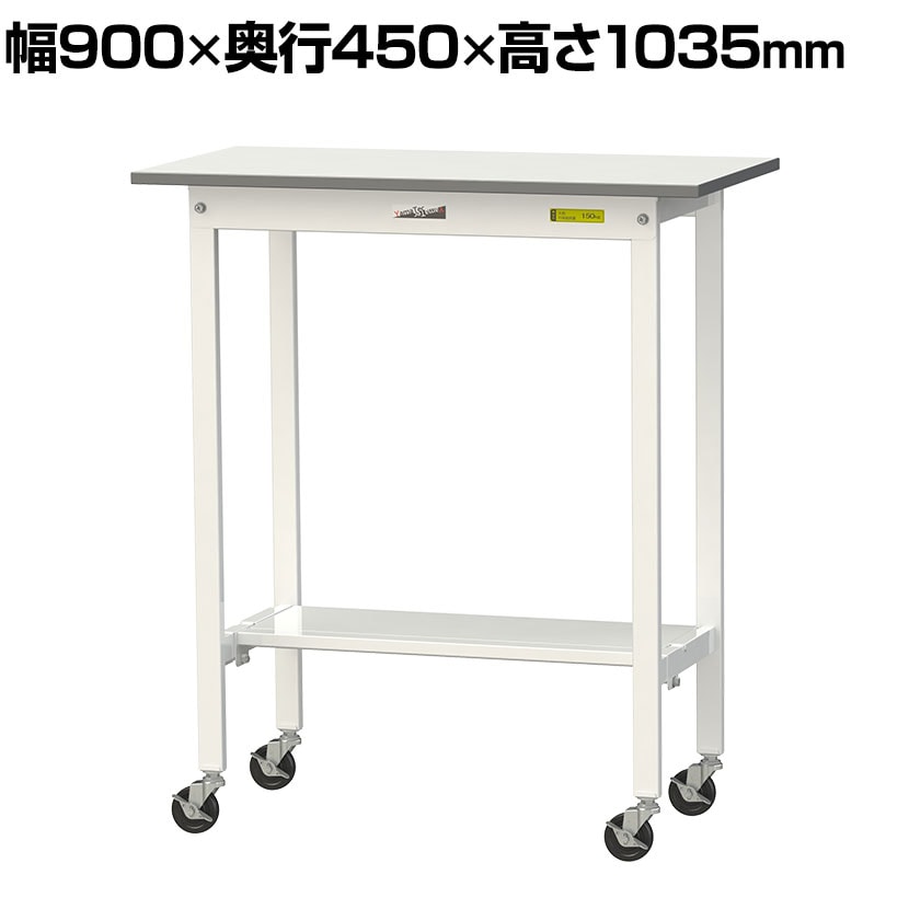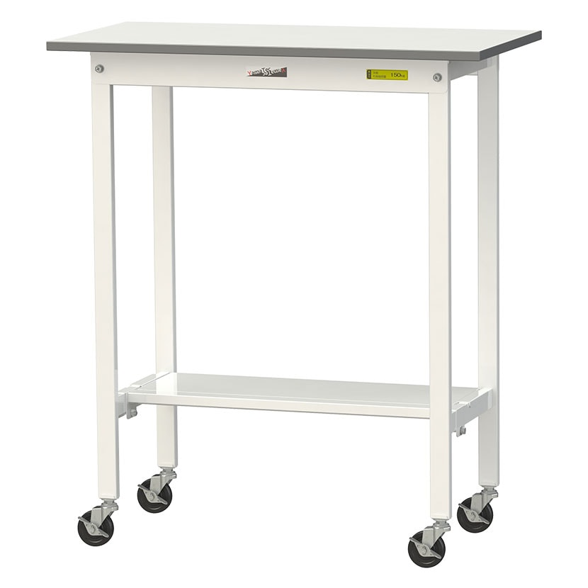 ・軽作業におすすめのキャスター付き汎用作業台です。足元に半面棚板付き。