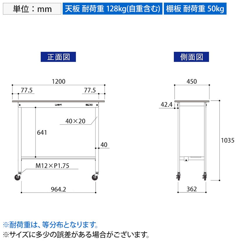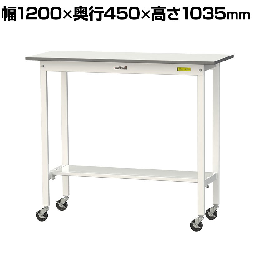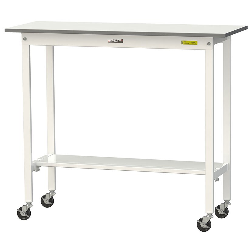 ・軽作業におすすめのキャスター付き汎用作業台です。足元に半面棚板付き。