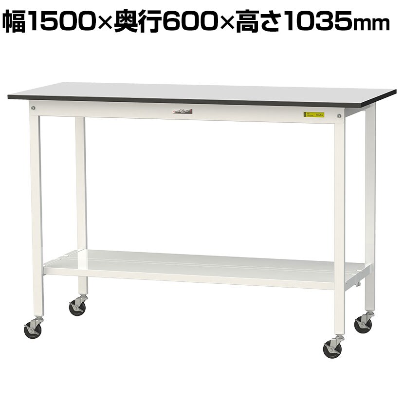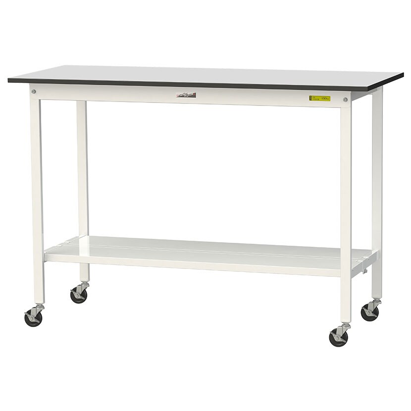 ・RoHS2指令対応の塩ビシート天板を採用。軽作業におすすめのキャスター付き汎用作業台です。足元に全面棚板付き。