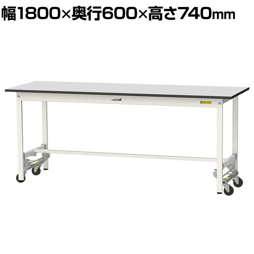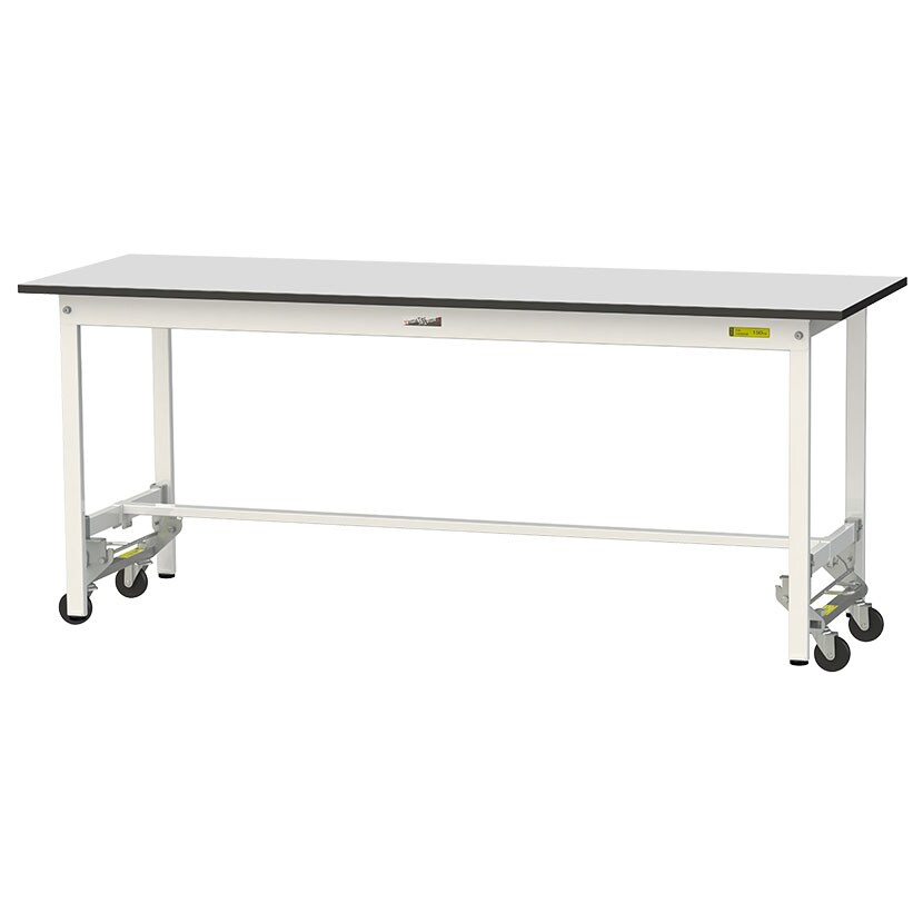 ・RoHS2指令対応の塩ビシート天板を採用。ワンタッチで固定式と移動式の切り替えが簡単にできます。レイアウト変更が素早く楽にできる作業台です。