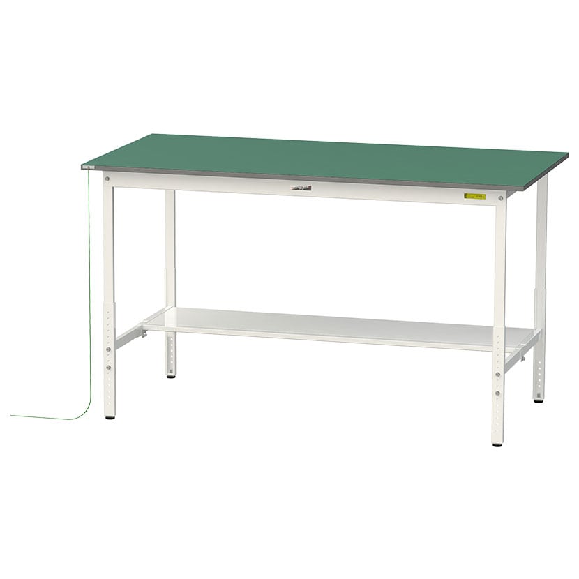 ・天板と同サイズの導電性ゴムマットと、コード長2mのアースが付属した高さ調整タイプの軽量作業台です。