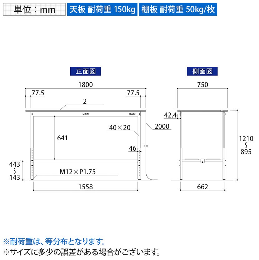 ・天板と同サイズの導電性ゴムマットと、コード長2mのアースが付属した高さ調整タイプの軽量作業台です。