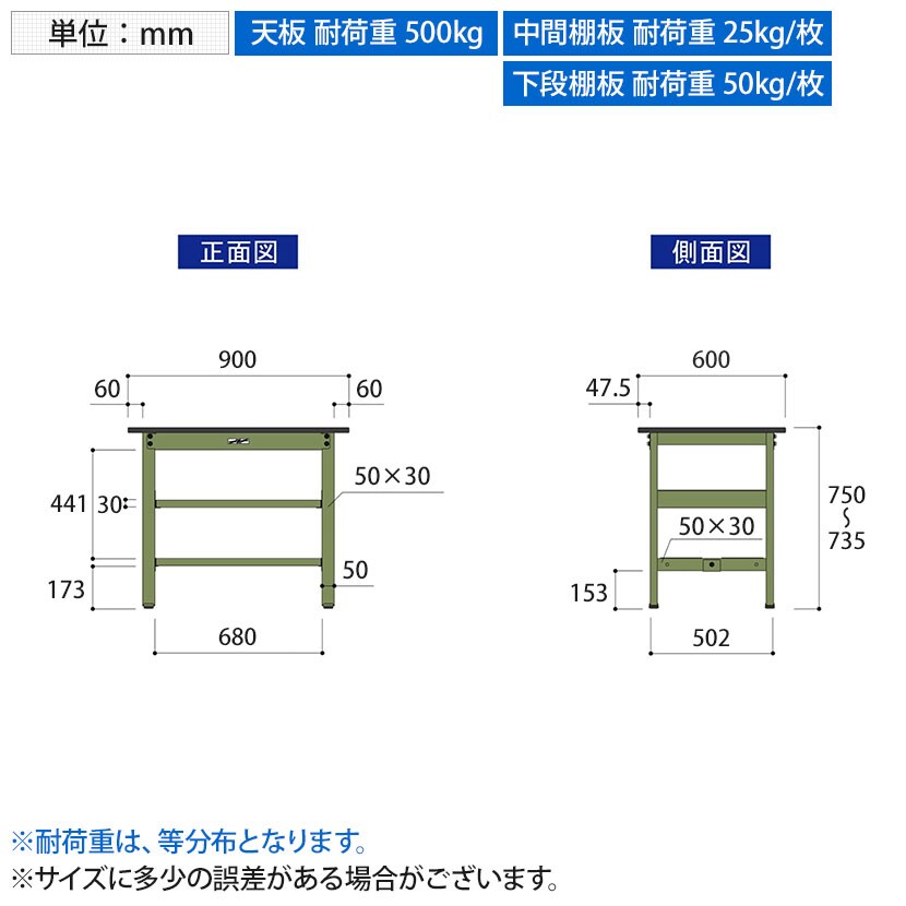 山金工業 中量作業台 中間棚付き 耐荷重500kg...56,100円(税込)51,000円(税抜) -