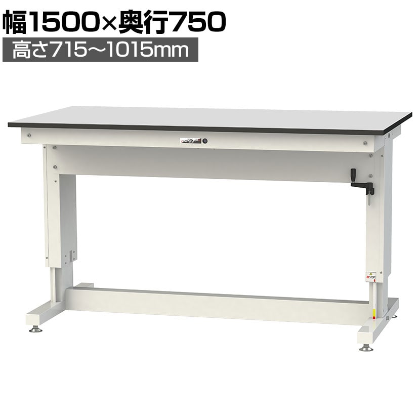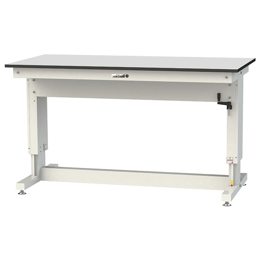 ・RoHS2指令対応塩ビシート天板仕様のハンドル昇降式のワークテーブルです。