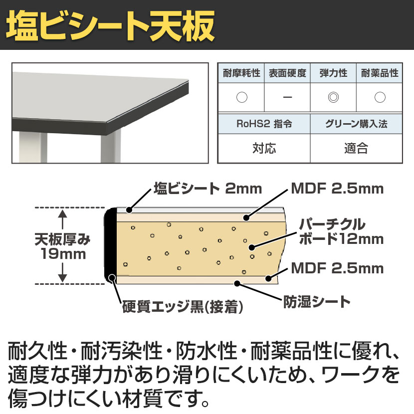 ・RoHS2指令対応塩ビシート天板仕様のワゴンです。