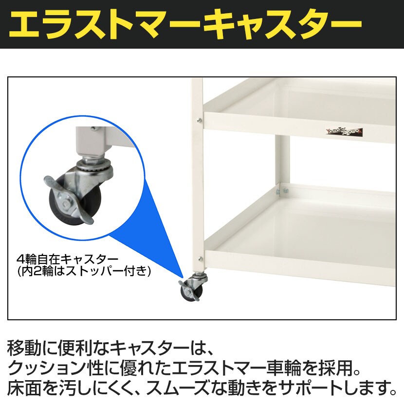 ・電子部品など精密部品製造現場や、研究施設等での移動用・運搬用ワゴン、補助テーブル、一人用作業台としてもご使用頂けます。