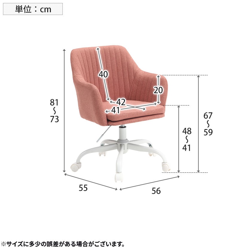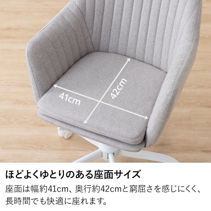 座面は幅約41cm、奥行約42cmと窮屈さを感じにくく長時間でも快適に座れるので、会議やデスクワークにも適しています。
