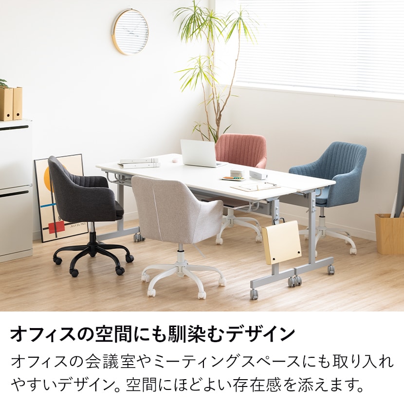 落ち着いた色味と布張りの柔らかな印象で、オフィスの会議室やミーティングスペースにも取り入れやすいデザイン。
