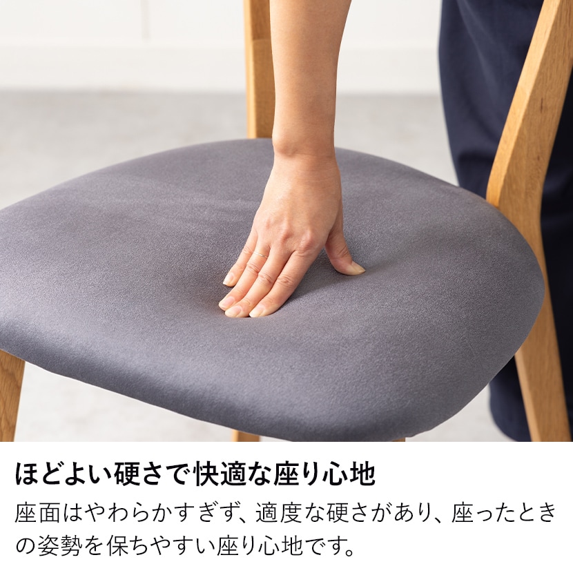沈み込みすぎないクッション性で、食事や作業中も快適にお使いいただけます。