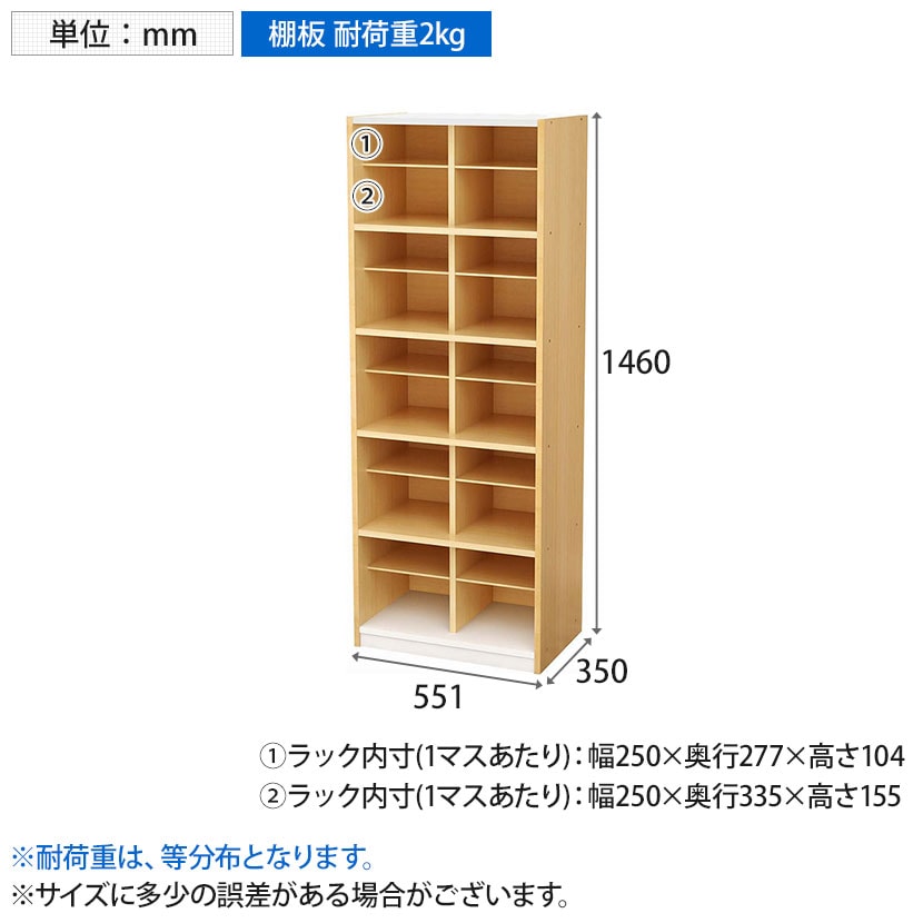 シューズラック内寸(1マスあたり) / 幅250×奥行335×高さ155mm