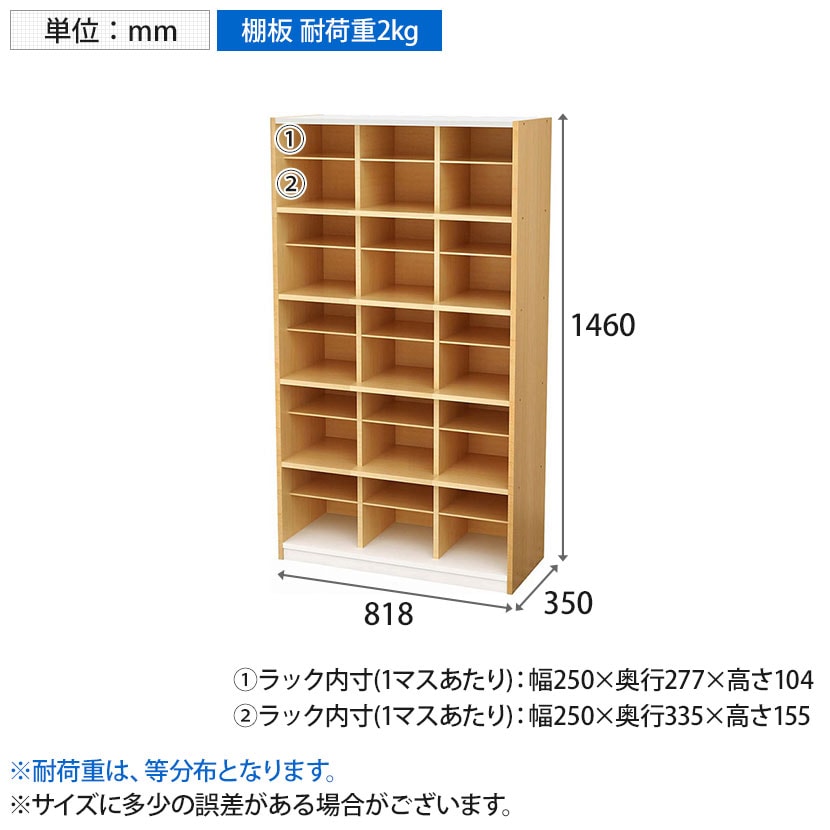 シューズラック内寸(1マスあたり) / 幅250×奥行335×高さ155mm