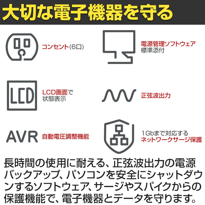 ・コンセント×6個口(UPS+サージ×3、サージのみ×3)
