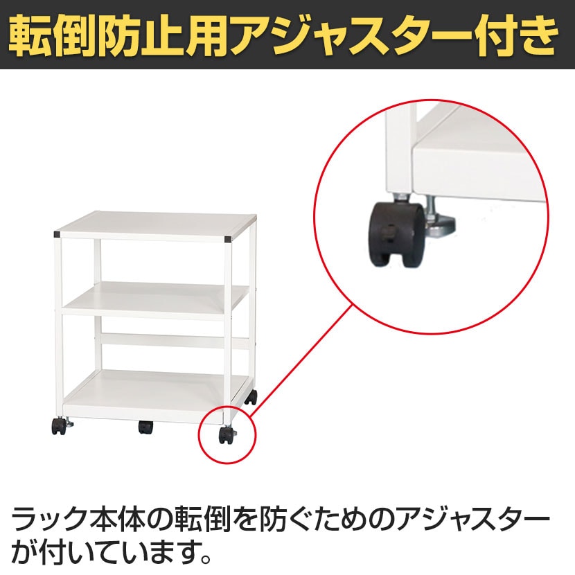 ・スライド棚には転倒防止用のアジャスターがついており安全に使用していただけます。