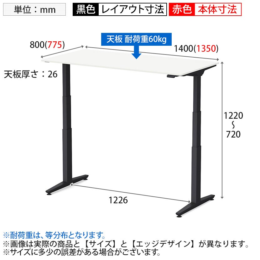 本体寸法 / 幅1350×奥行775×高さ720~1220mm