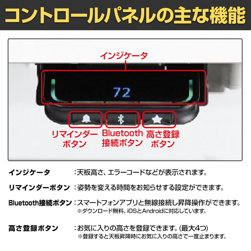手をかけるだけで直感的に操作することができます。高さ表示と高さを記憶するメモリー付きです。