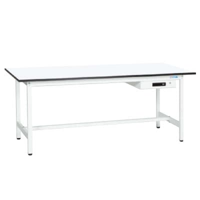 ・抗菌、抗ウイルス効果のあるパステル色の天板を使用した作業台です。本体は銀イオン配合による抗菌効果のある粉体塗装を使用しています。