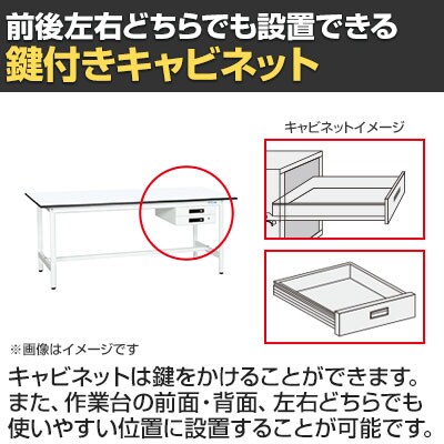 ・抗菌、抗ウイルス効果のあるパステル色の天板を使用した作業台です。本体は銀イオン配合による抗菌効果のある粉体塗装を使用しています。