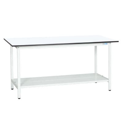 ・抗菌、抗ウイルス効果のあるパステル色の天板を使用した作業台です。本体は銀イオン配合による抗菌効果のある粉体塗装を使用しています。
