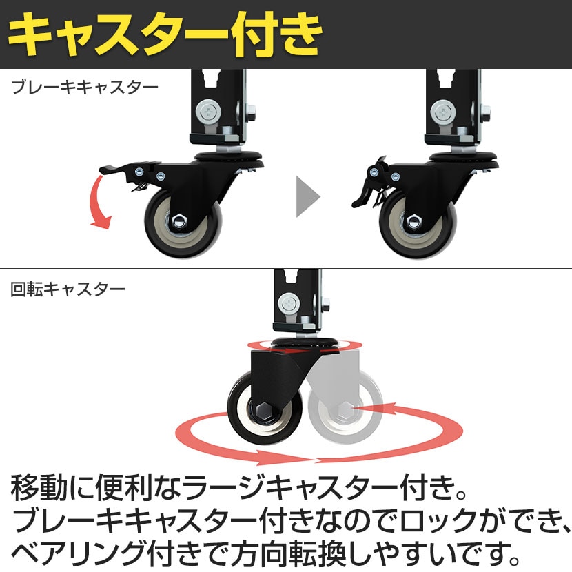 ・付属品 / 棚板×5枚、ハンマー×1個、ブレーキキャスター×2個、回転キャスター×2個