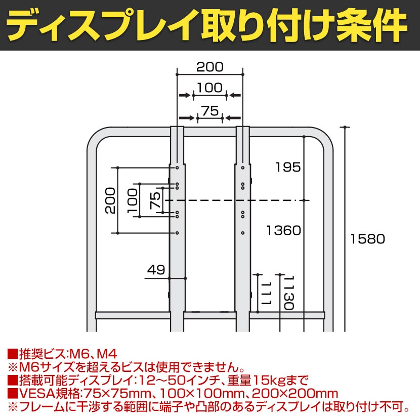 搭載可能ディスプレイ / 12~50インチ、重量15kgまで