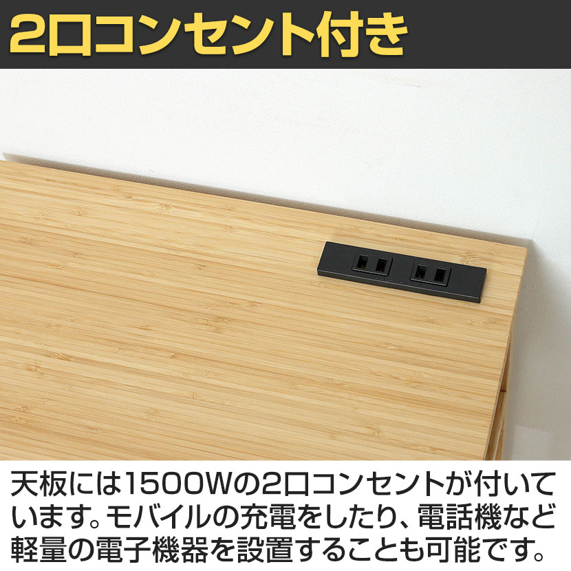・1500Wのコンセントが2口ついているので、携帯電話の充電やデスクライトの使用も可能です。