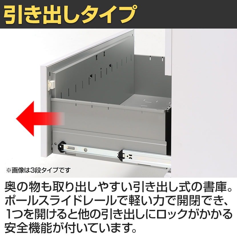 ・1つの引き出しを開けるとその他の引き出しにロックがかかる安全機構付きです。