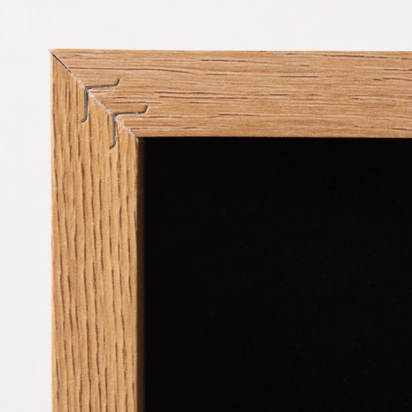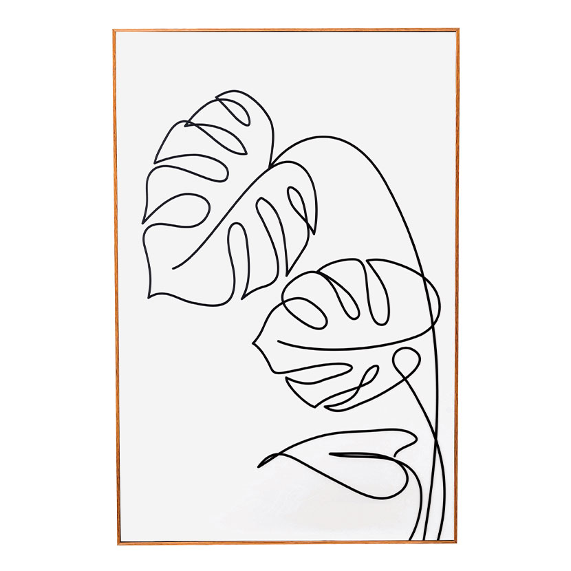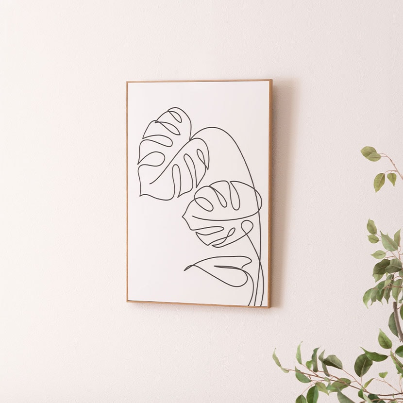 葉モチーフのおしゃれな線画デザインに、木目のフレームが温かみを添えています。