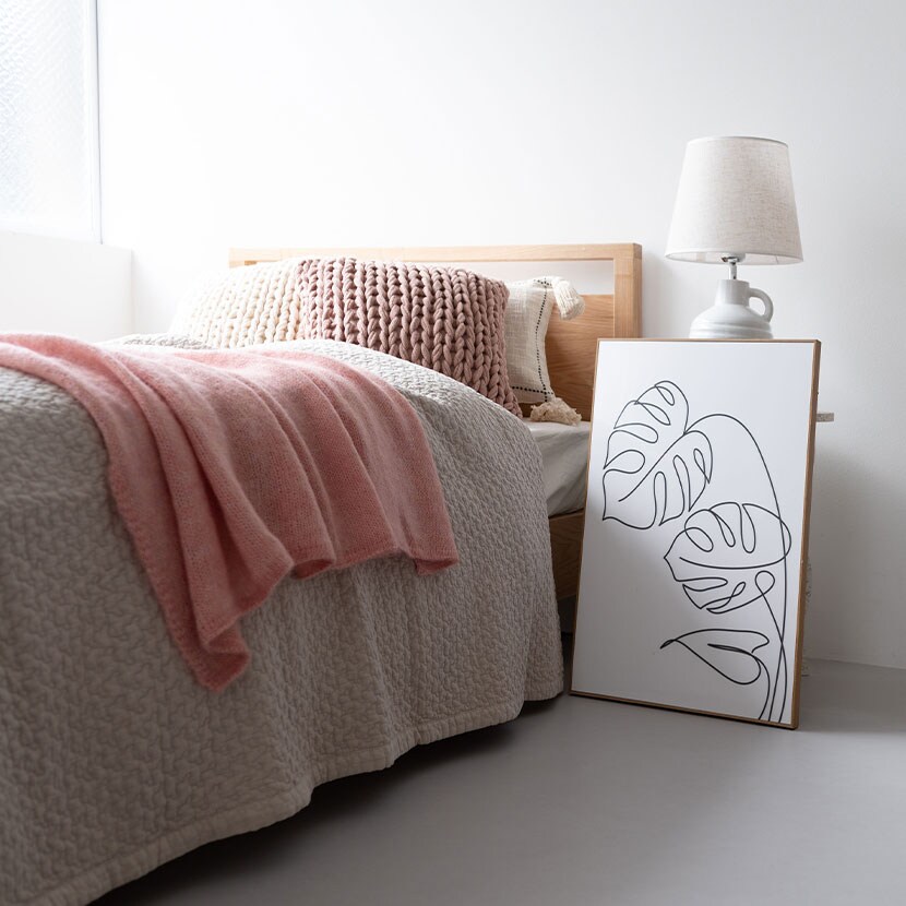 壁に掛けたり、そのまま床や棚に立て掛けたりと、お好みのスタイルで簡単に設置できます。