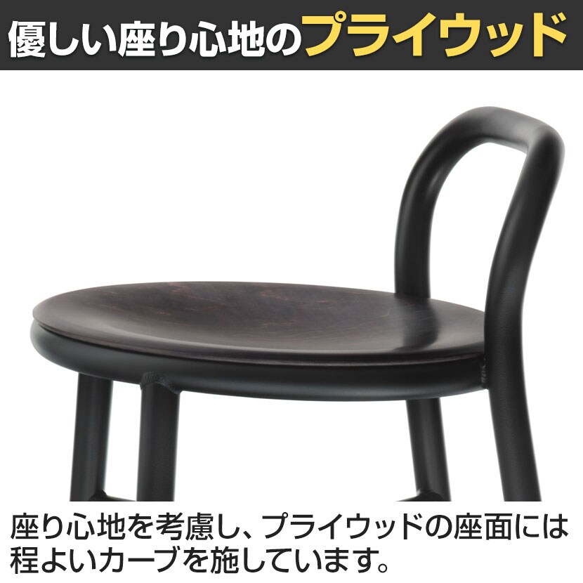 ・その絶妙なラインが美しく引き立つよう、座面と背もたれには、ネジ・リベットを使わず、特殊な接着剤で固定しました。