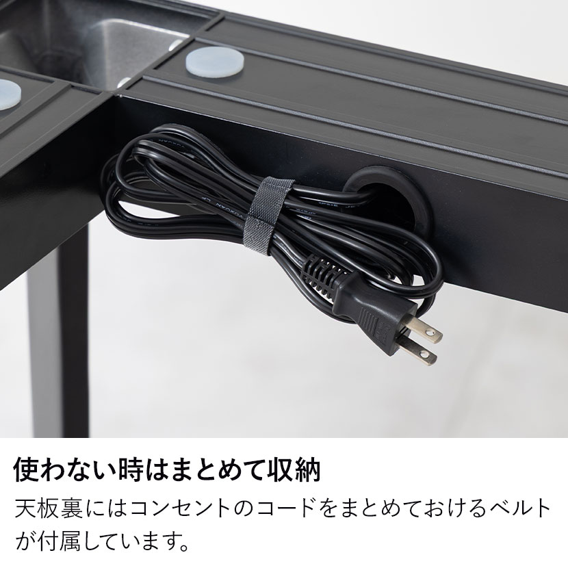 天板裏にはコンセントのコードをまとめておけるベルトが付属しています。