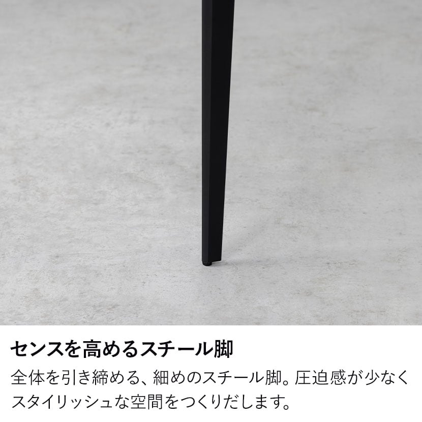 全体を引き締める、細めのスチール脚。圧迫感が少なくスタイリッシュな空間をつくりだします。