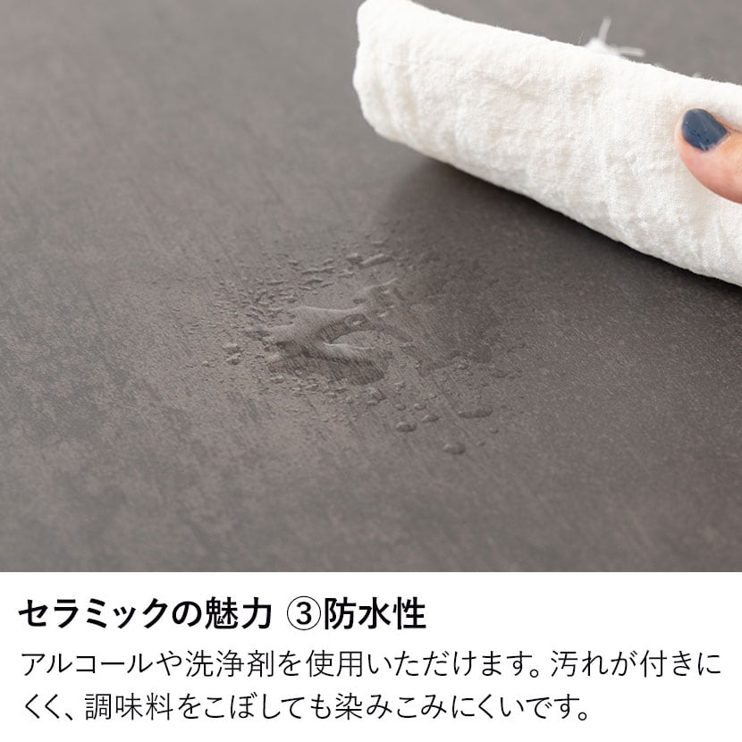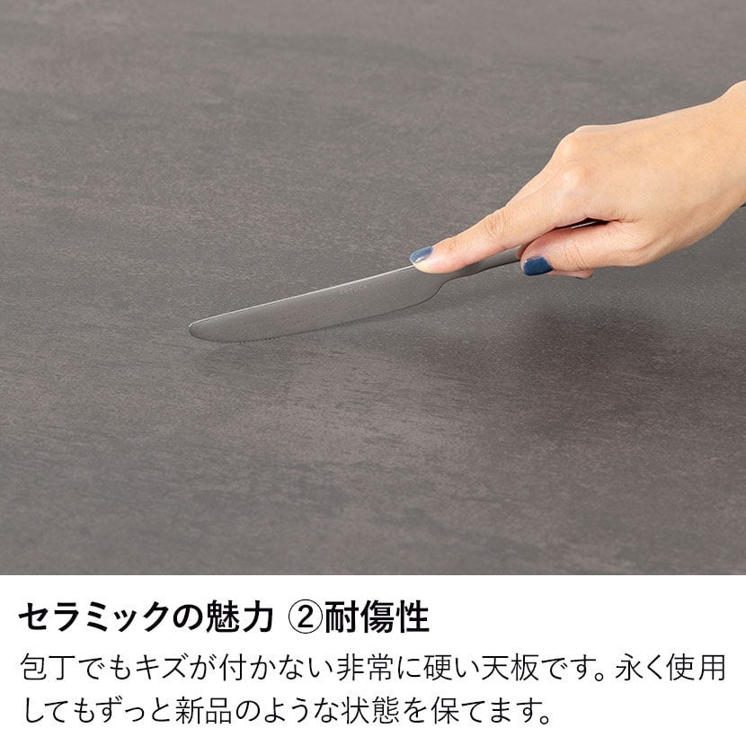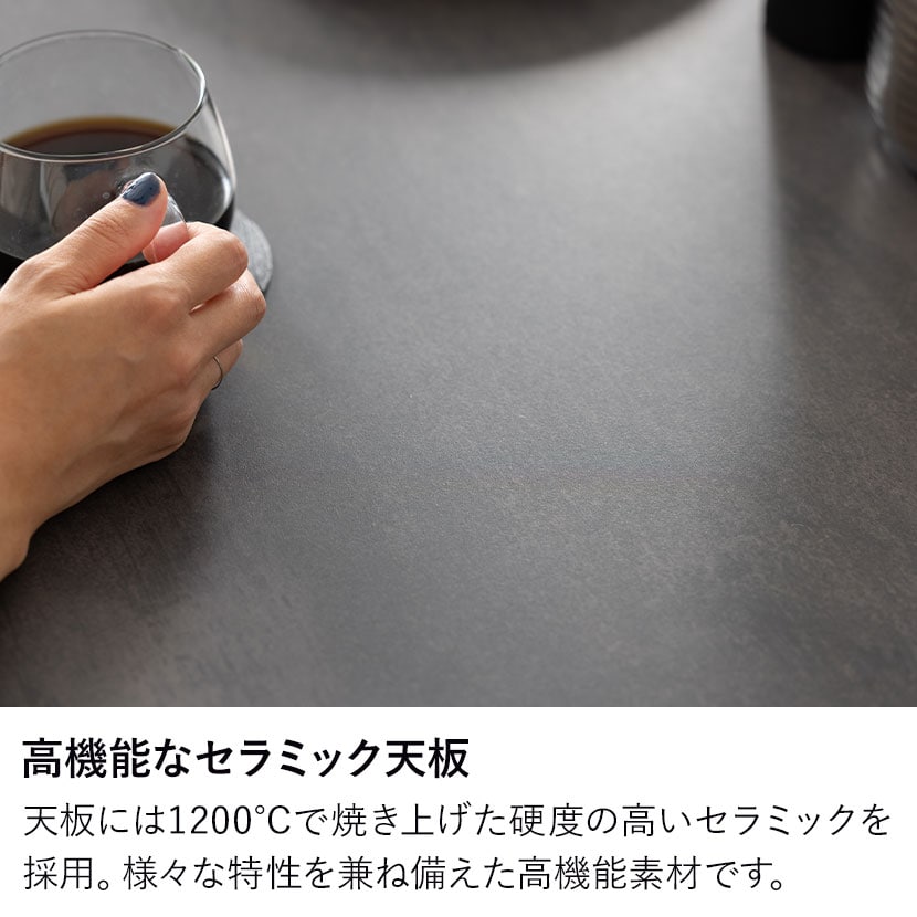天板には1200℃で焼き上げた硬度の高いセラミックを採用。様々な特性を兼ね備えた高機能素材です。