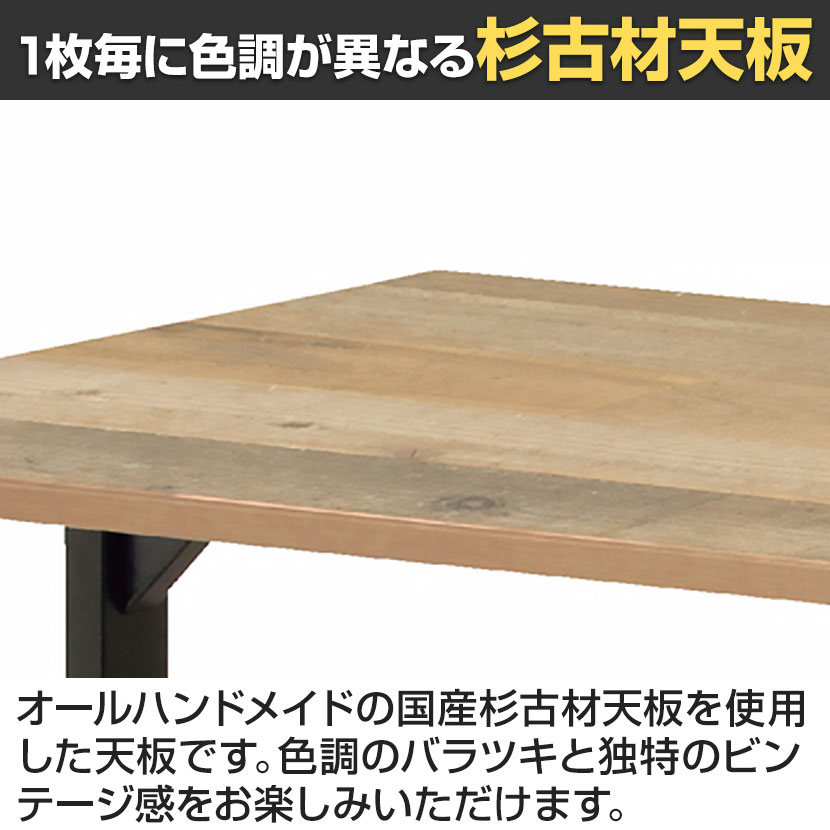 オールハンドメイドの国産杉古材天板を装備したテーブルです。