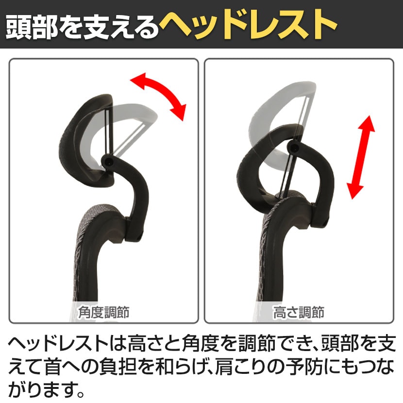 ヘッドレスト(角度・高さ調節可能)