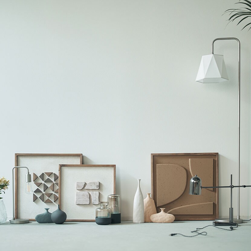 壁に掛けたり、そのまま床や棚に立て掛けるだけで、手軽にお部屋のアクセントとしてお楽しみいただけます。