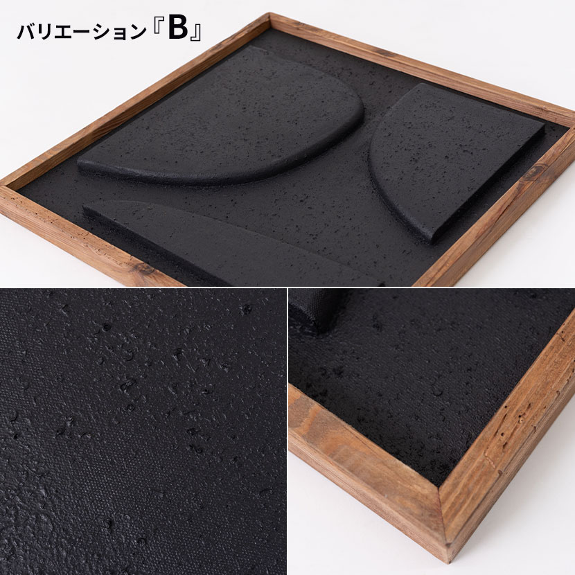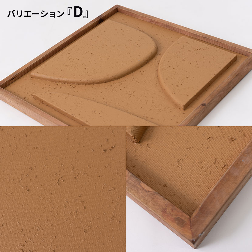 塗装したコットン帆布をベースに、古材をリズミカルに重ねることで奥行きのある立体感を生み出しています。