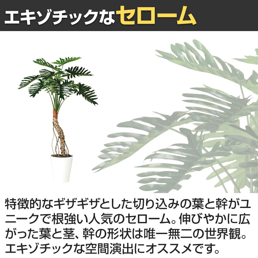 サトイモ科フィロデンドロン属「セローム」はギザギザとしたきりこみの葉と幹が特徴的です。