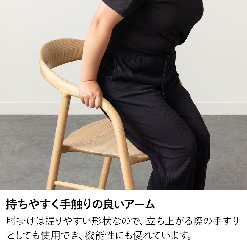 肘掛けは握りやすい形状なので、立ち上がる際の手すりとしても使用でき、機能性にも優れています。