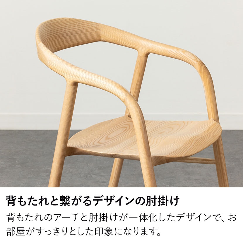 背もたれのアーチと肘掛けが一体化したデザインで、お部屋がすっきりとした印象になります。