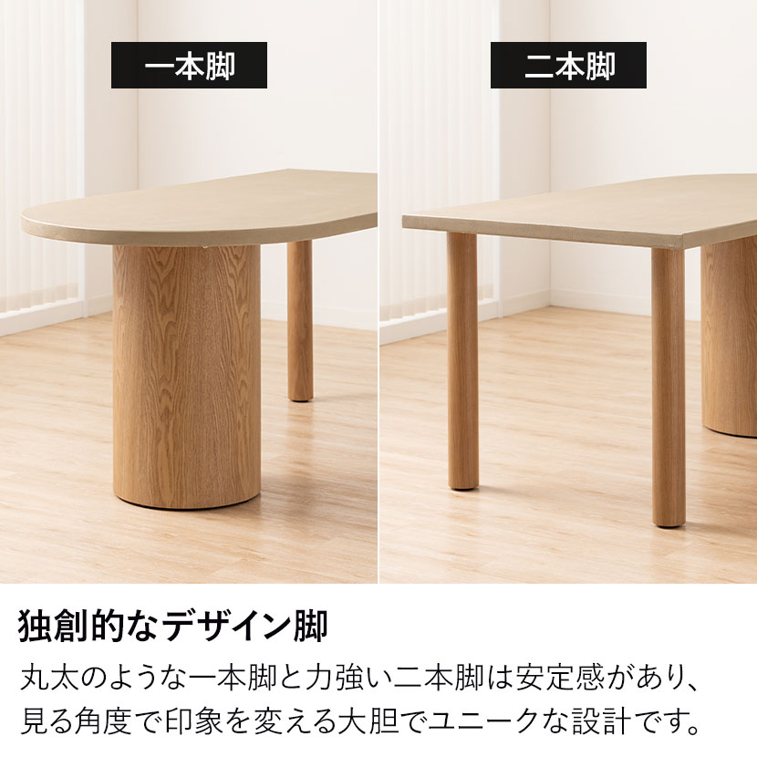 丸太のような一本脚と力強い二本脚は安定感があり、見る角度によって印象を変える大胆でユニークな設計です。